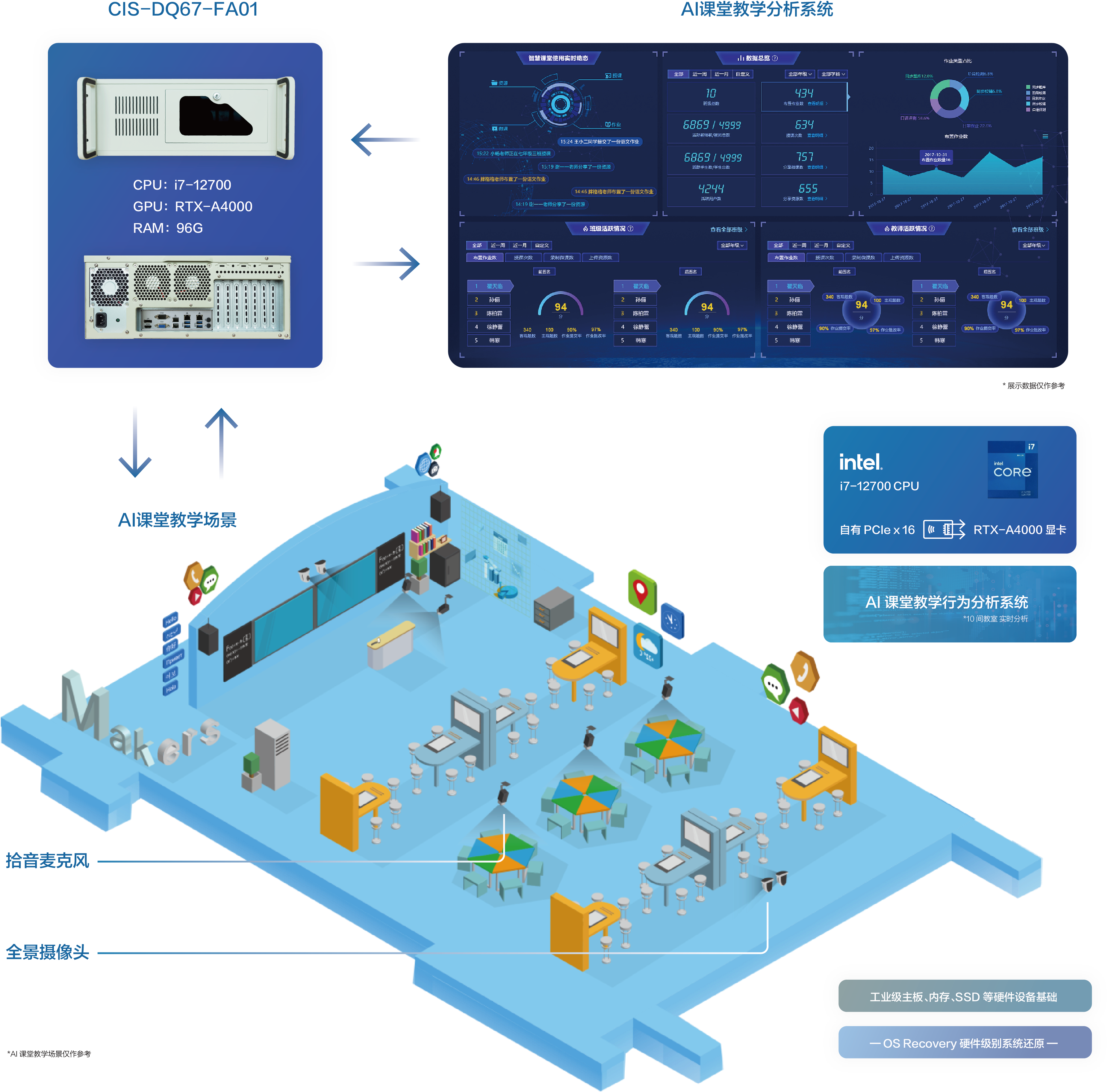 基于用户需求,九州ku游官网提供基于CIS-DQ67-FA01 4U箱体电脑为核心计算单元的AI课堂教学分析解决方案,该方案具备以下优势:
