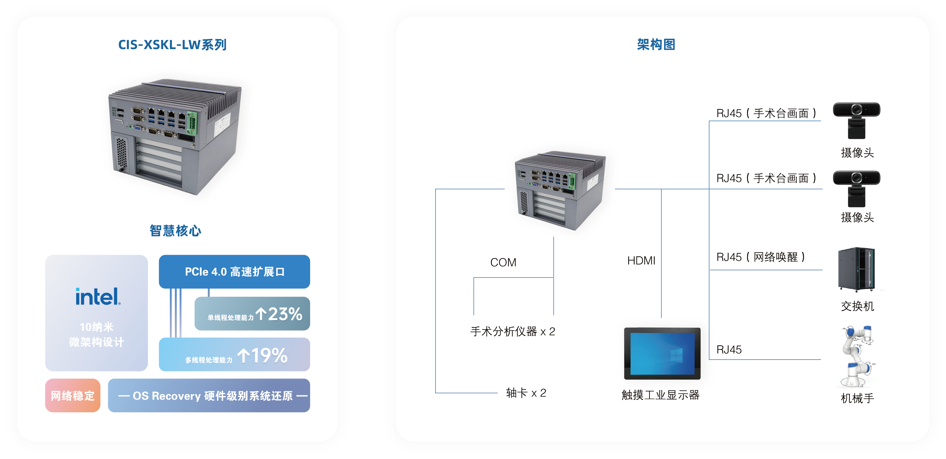 案例用户为国内某医疗器械提供商,为了保障其手术机器人精准、稳定运行,用户对其核心控制单元-工业计算机的品质与性能提出了极高要求: